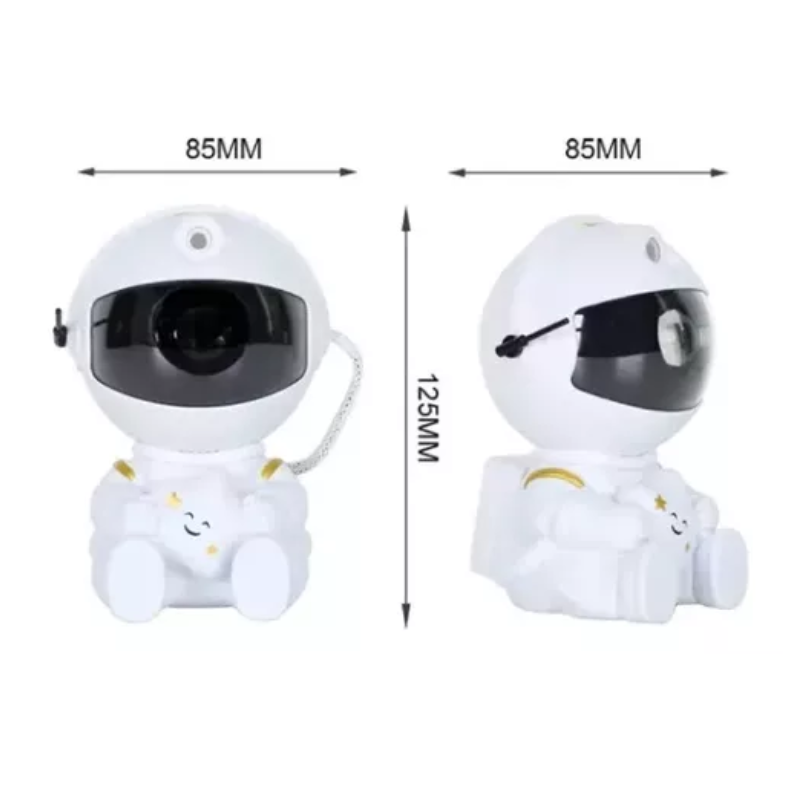 Design inovador e aparência única: O design da aparência do astronauta é novo e único, respondendo ao tema do céu e da Via Láctea, levando-o a explorar o vasto céu estrelado. A cabeça do astronauta pode girar 360, com atração magnética, e pode projetar uma nebulosa em qualquer lugar sem restrições. Além disso, a base da lua do astronauta é destacável, os braços podem ser movidos, e várias poses podem ser tomadas, o que também é um bom ornamento decorativo.